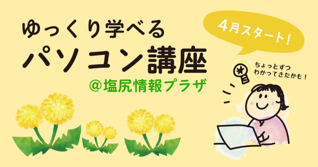 令和8年4月より、塩尻情報プラザにて6ヶ月のコースが始まります。一人ひとり自分の課題に取り組んでいる個別授業で、初心者はもちろん経験者の方も大歓迎です。資格取得も好評です!