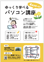4月と10月開始、週1回のペースで6ヶ月間学んでいくパソコン講座。それぞれ10名程度で、各自のペースで自分の勉強したい事をコツコツ学んでいます。もっと勉強したい方は、継続して続けることも可能です。